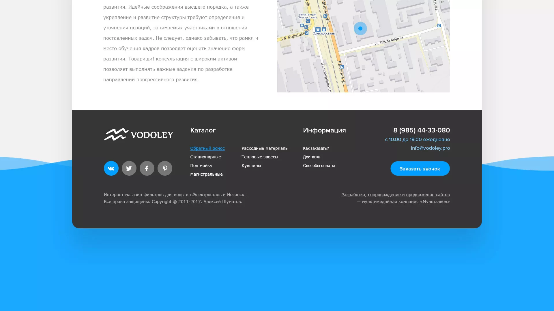 Работать с компанией «Мультзавод» удобно и легко, поэтому, если Вам требуется создание аналогичного сайта по продаже и установке фильтров очистных сооружений в Нестерове, мы предложим Вам действительно выгодные цены и удобные условия сотрудничества. Мы обещаем, что вложенные в разработку сайта деньги окупятся и Вы получите современный рабочий интернет-магазин!